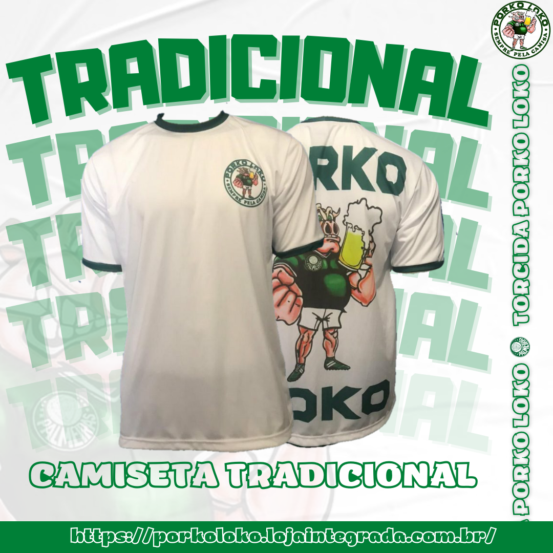 CAMISETA TRADICIONAL Gola: Careca Patch: Bordado Cores: Verde / Branco Torcida Porko Loko Sempre Pela Camisa